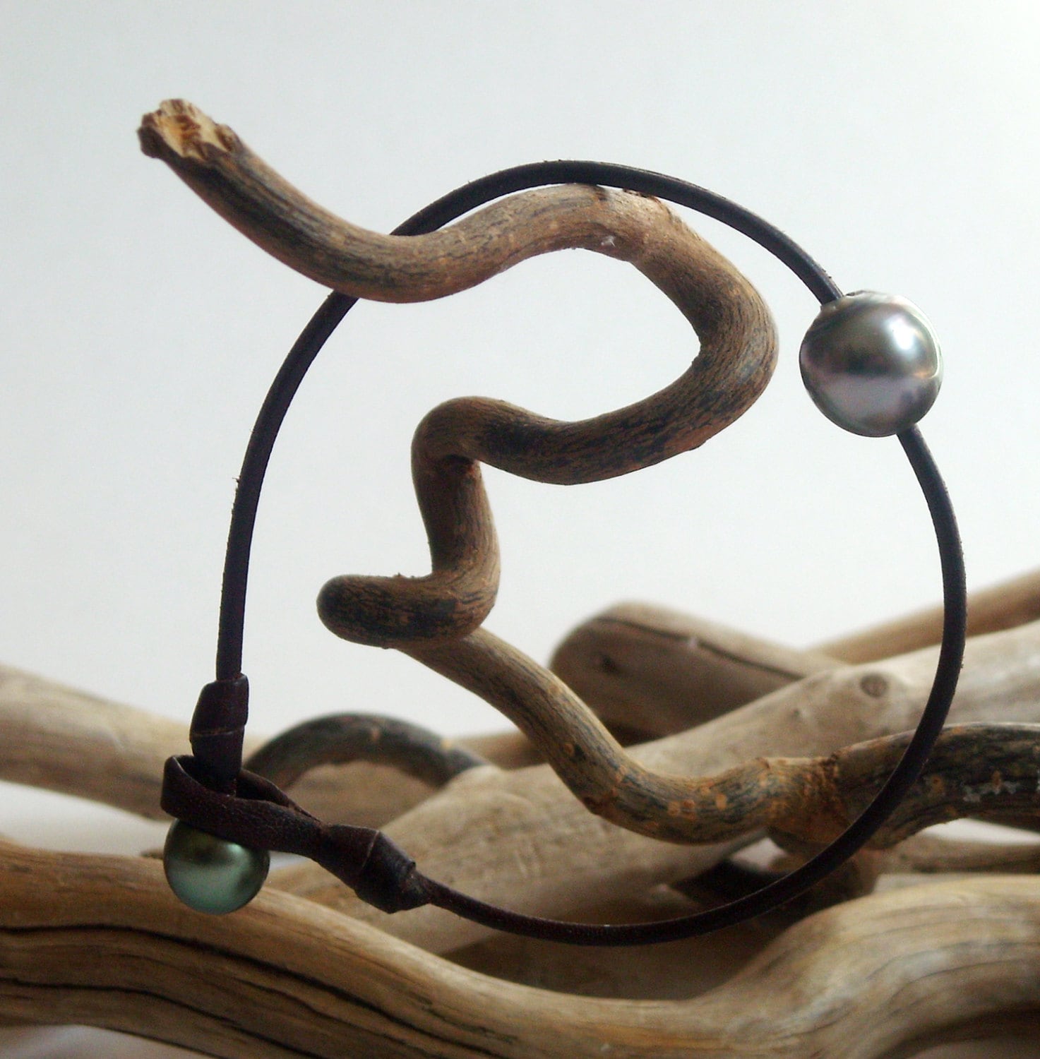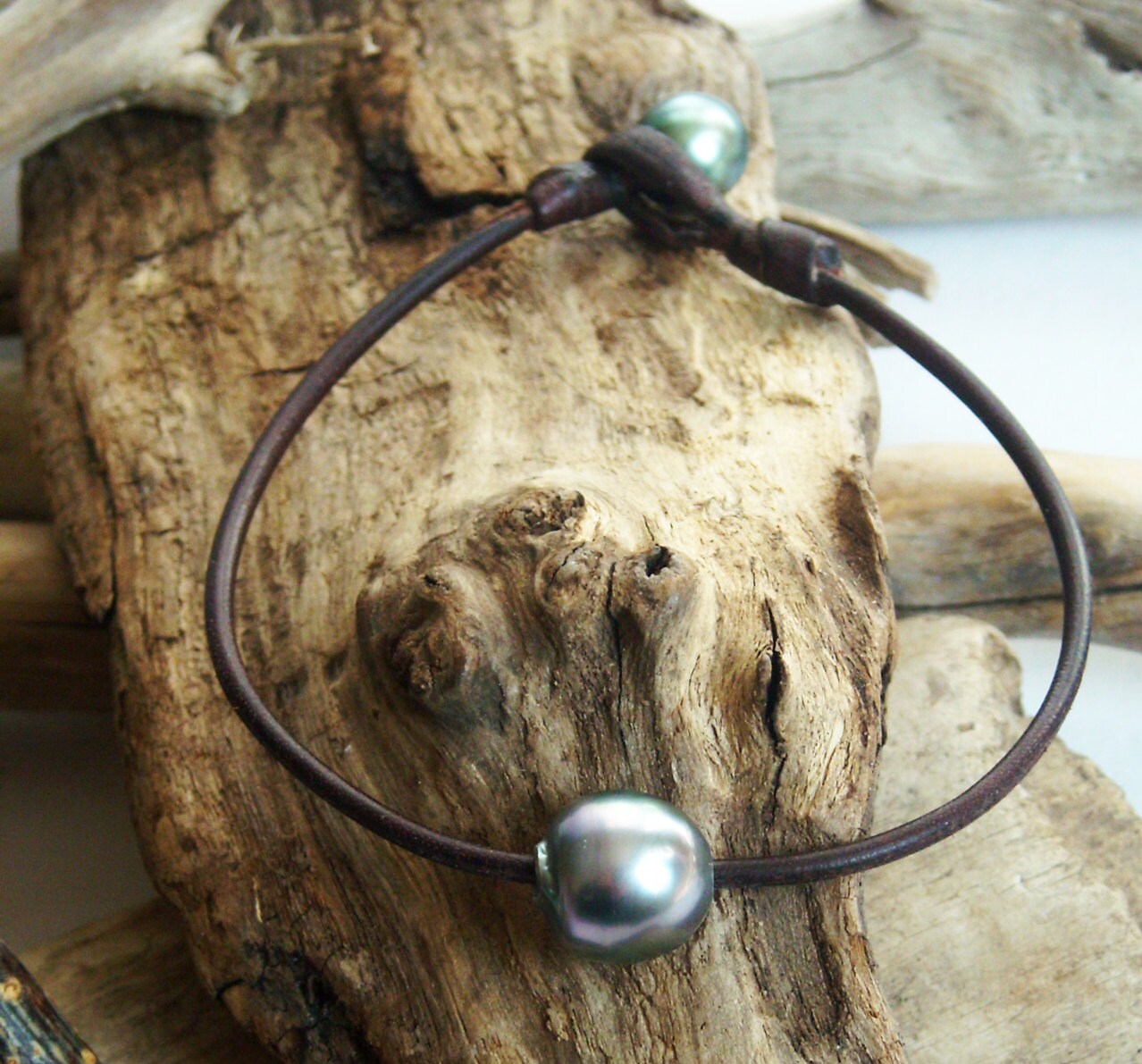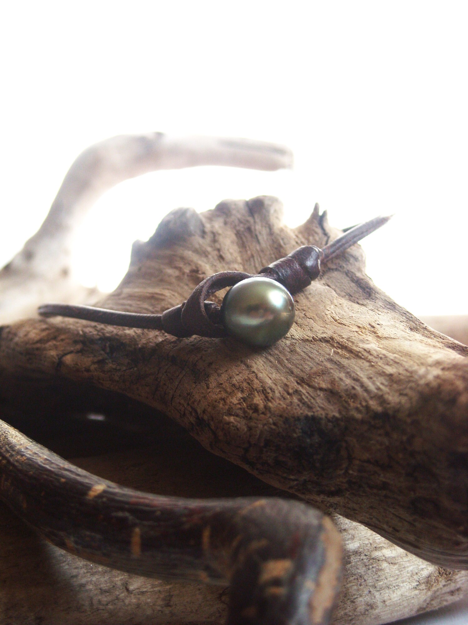 Beautiful tahitian pearls bracelet for man, pure and stylish design, surfer style jewel.