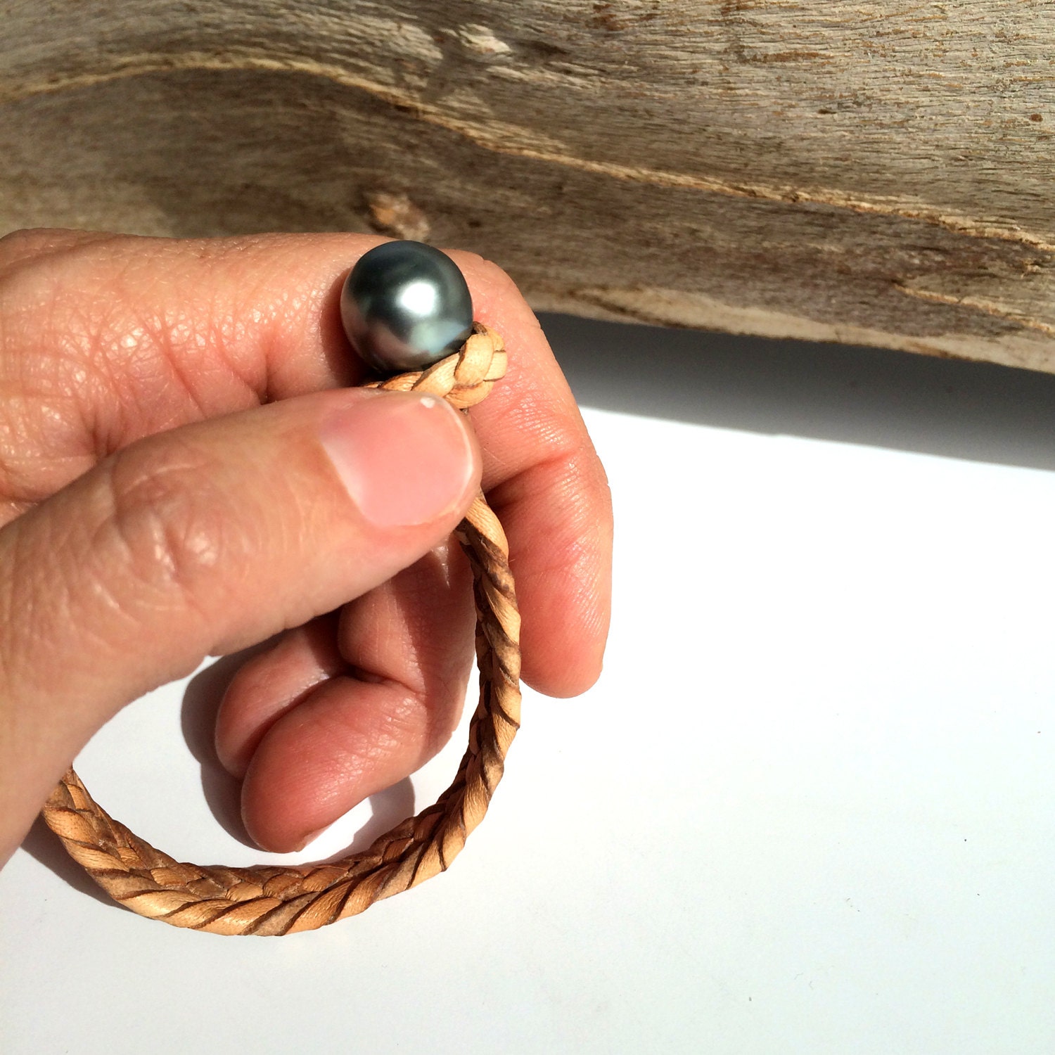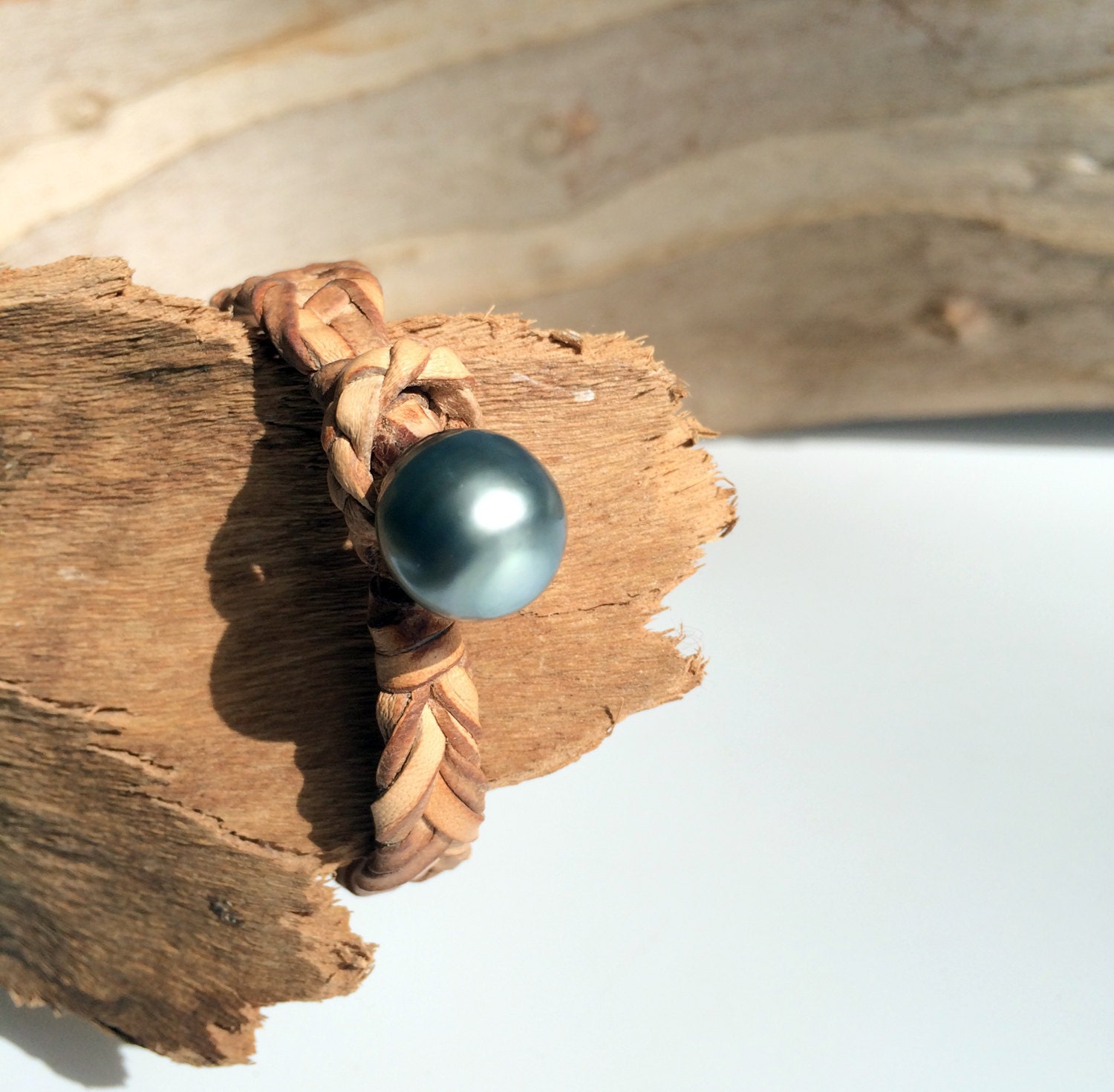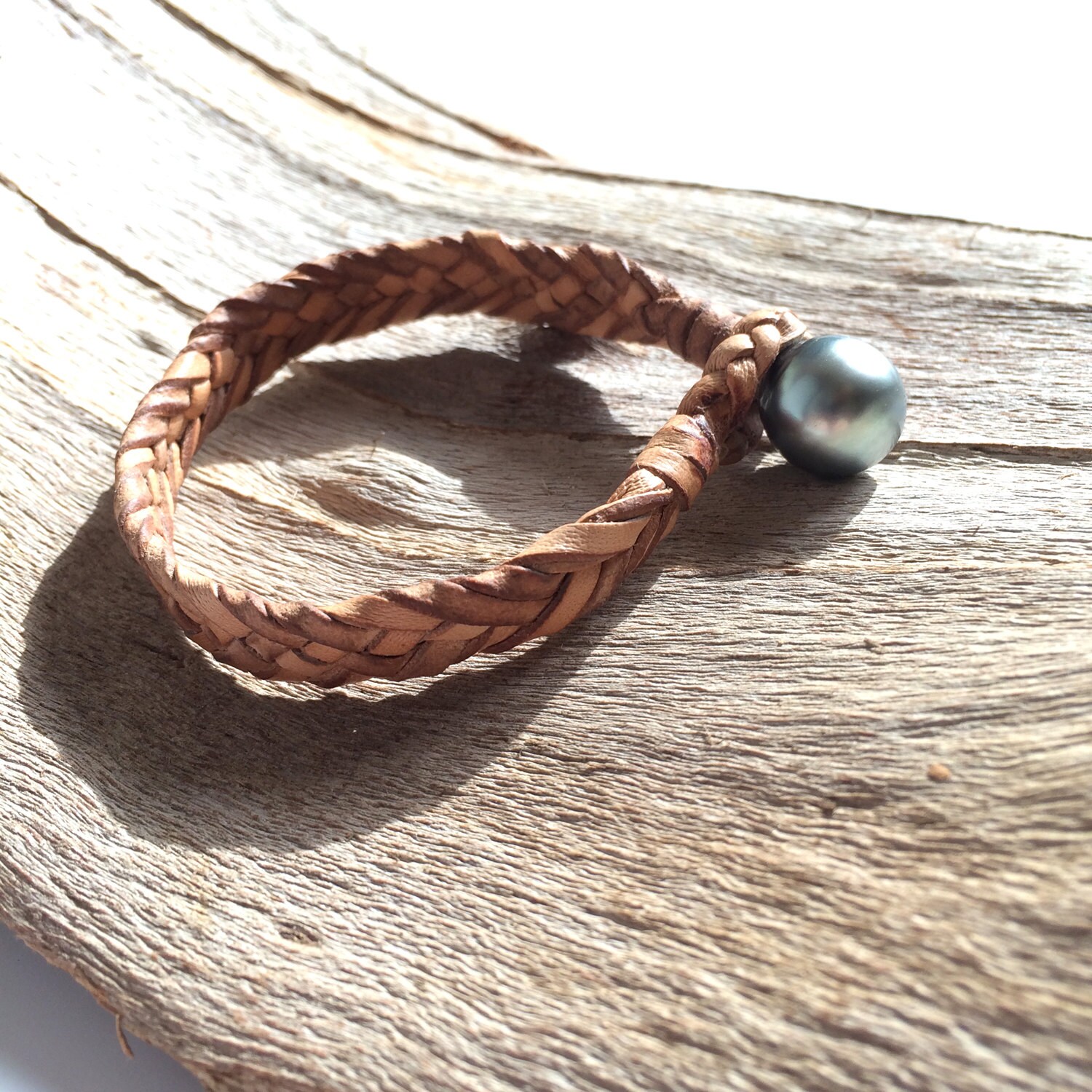 7 strands leather Braided Bracelet and beautiful Tahitian pearl.