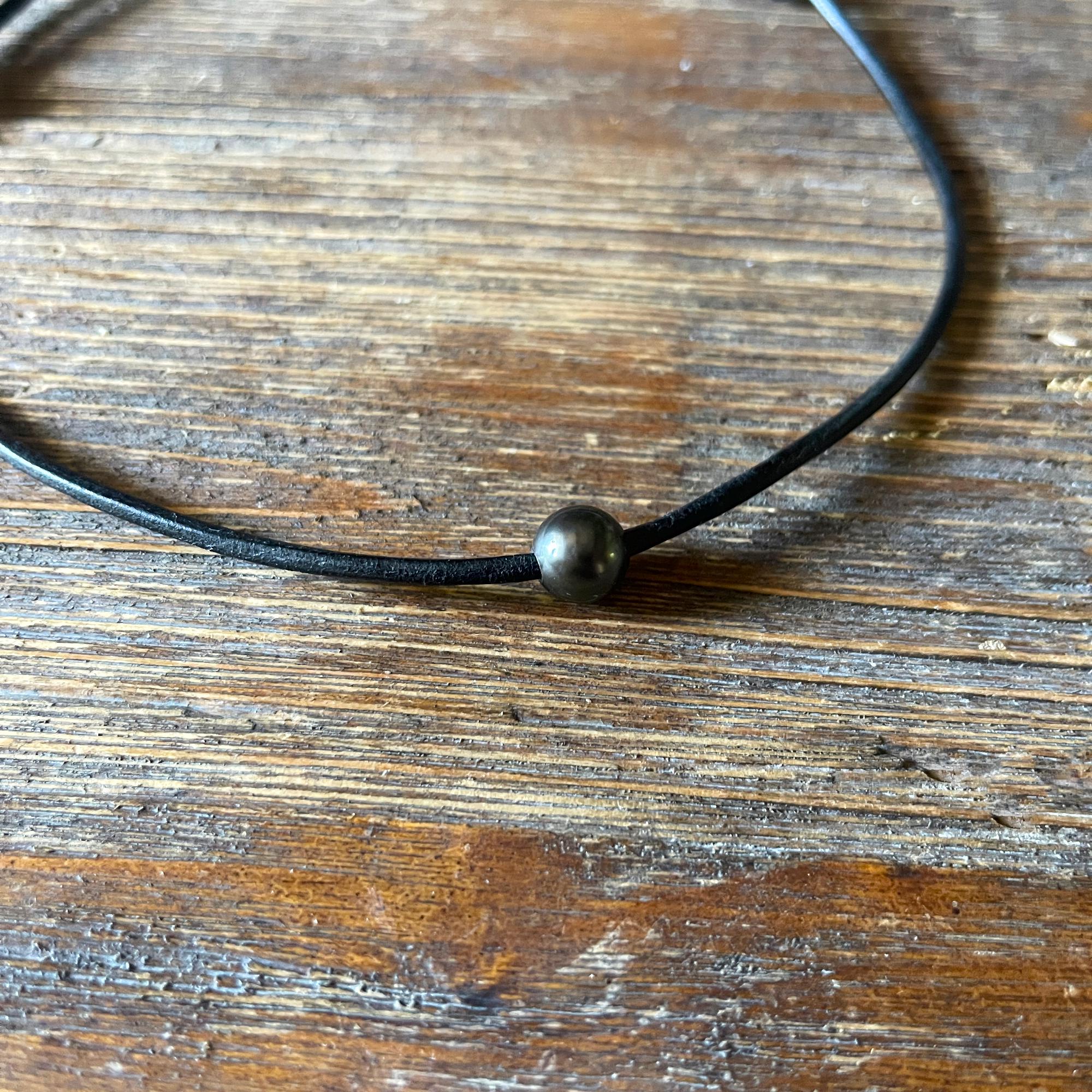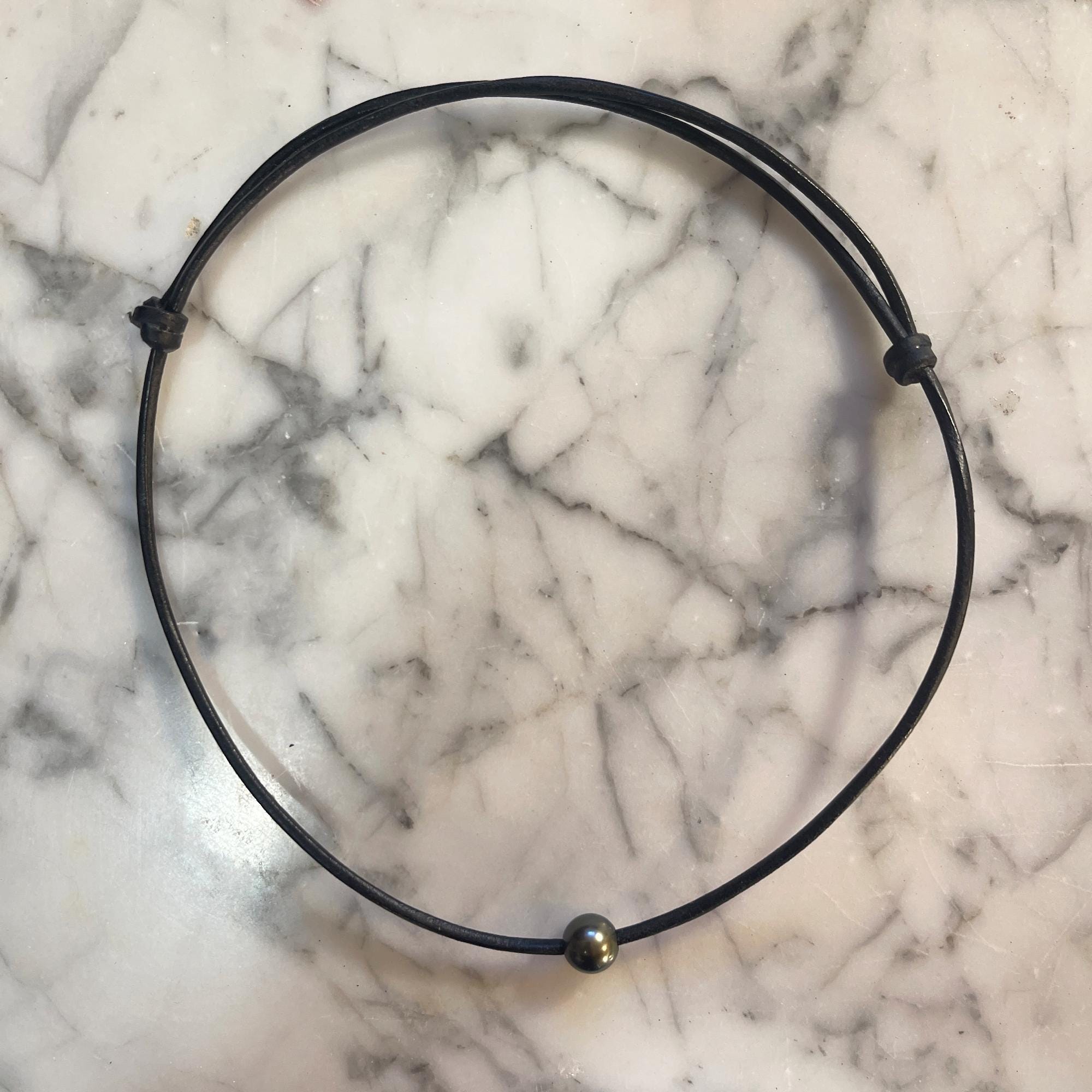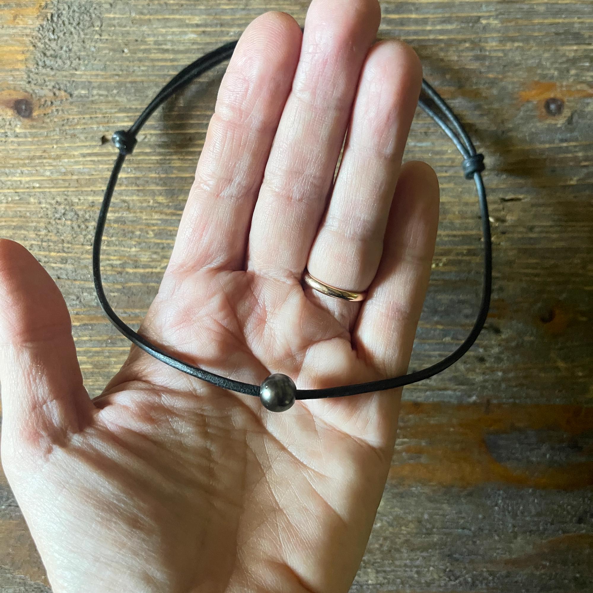 Necklace made with a beautiful Tahitian pearl mounted on leather, adjustable in size thanks to the sliding knots.