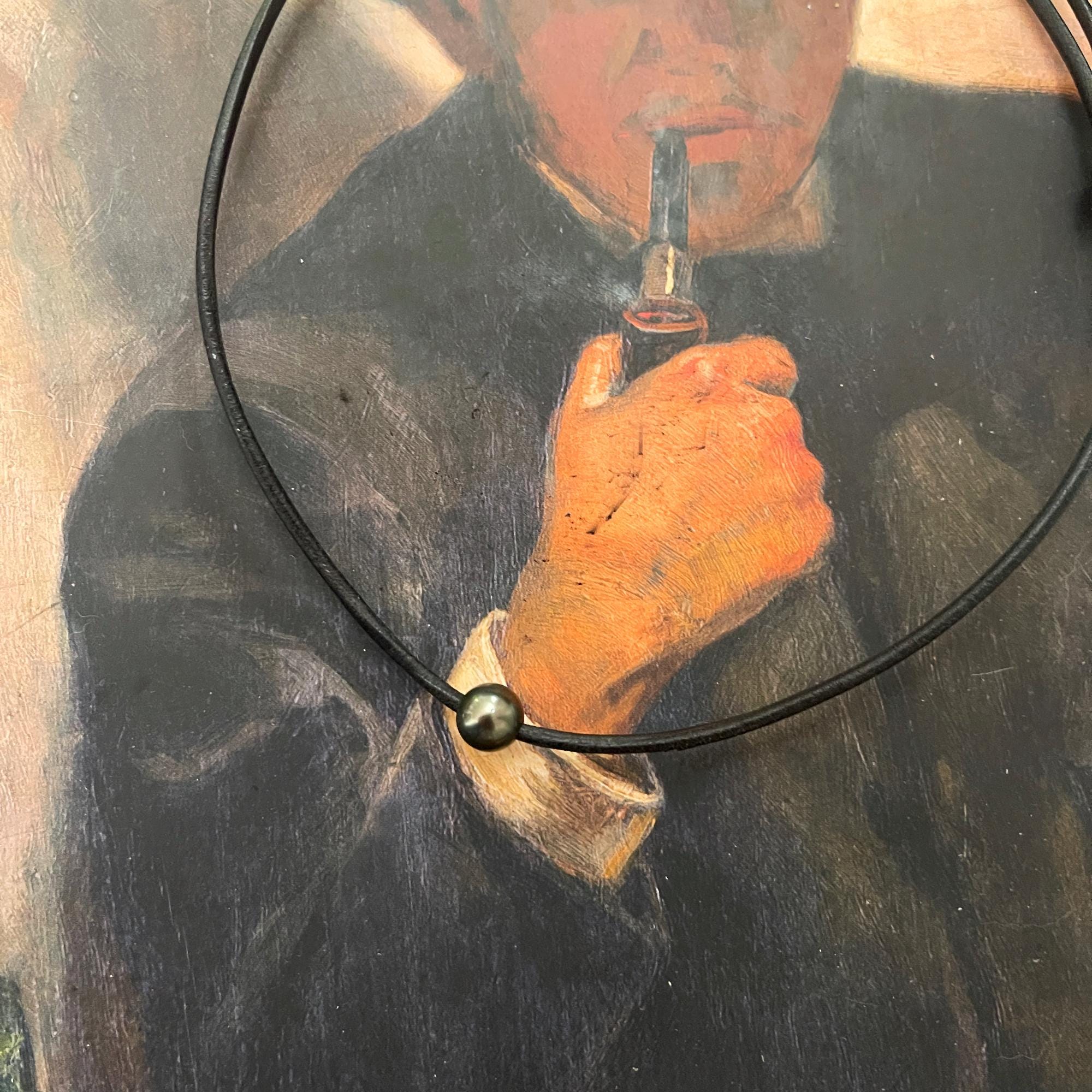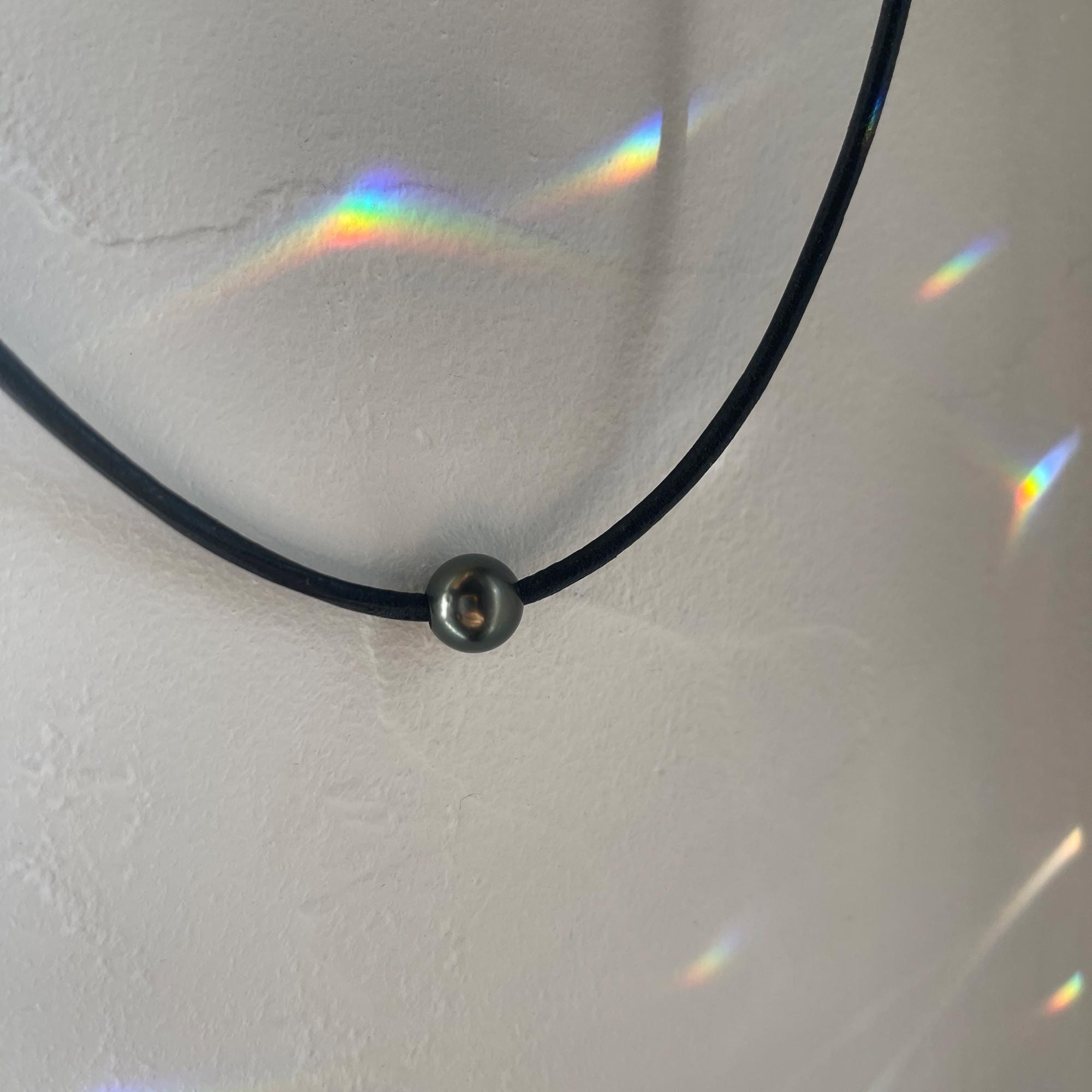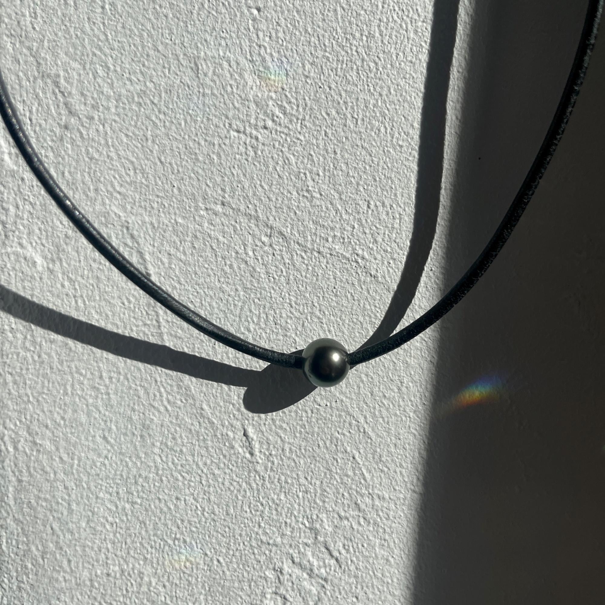 Necklace made with a beautiful Tahitian pearl mounted on leather, adjustable in size thanks to the sliding knots.