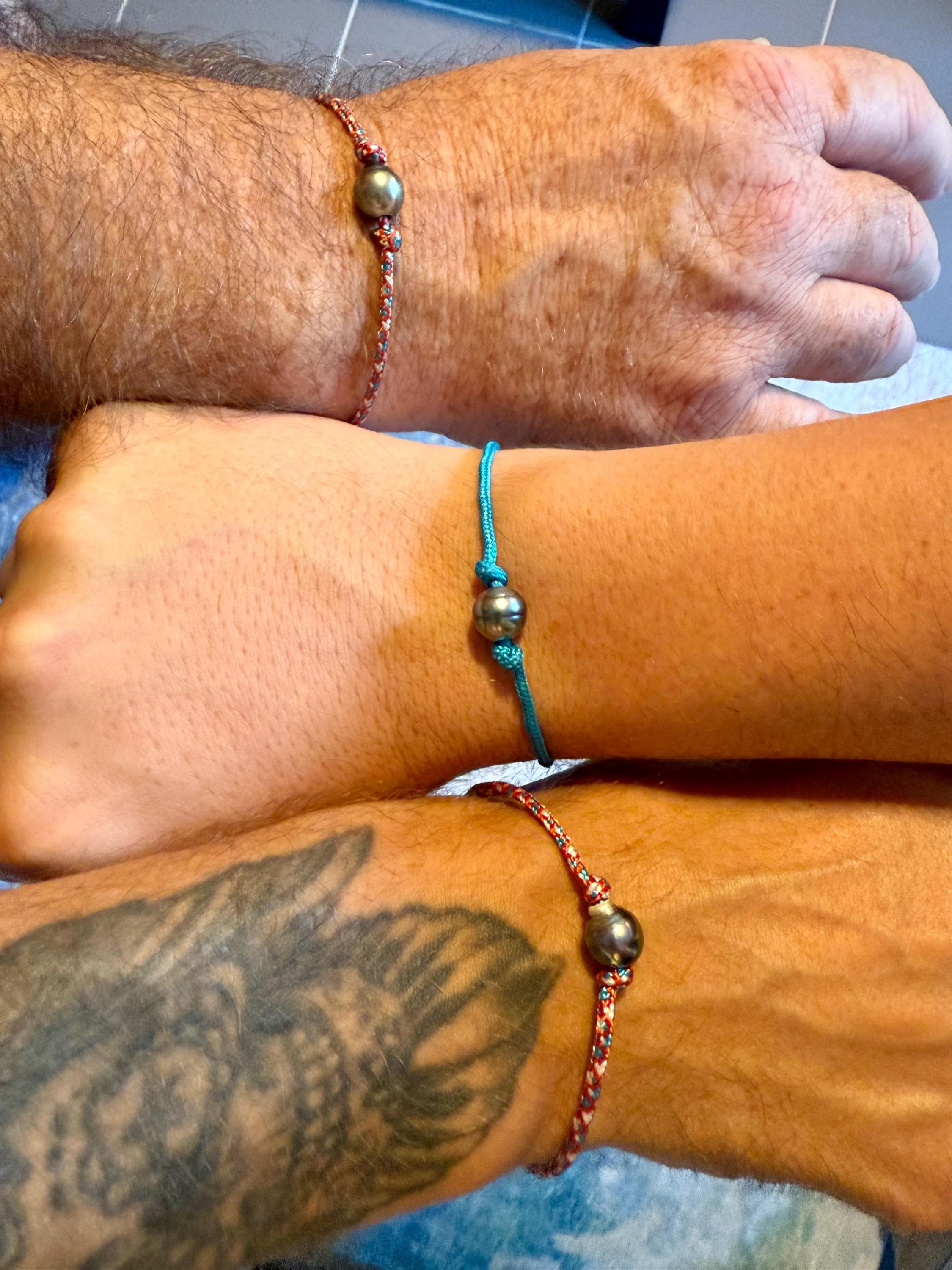 Tahitian pearl bracelet mounted on a parachutist rope (paracord) Red / turquoise / white. Sailor or surf style !